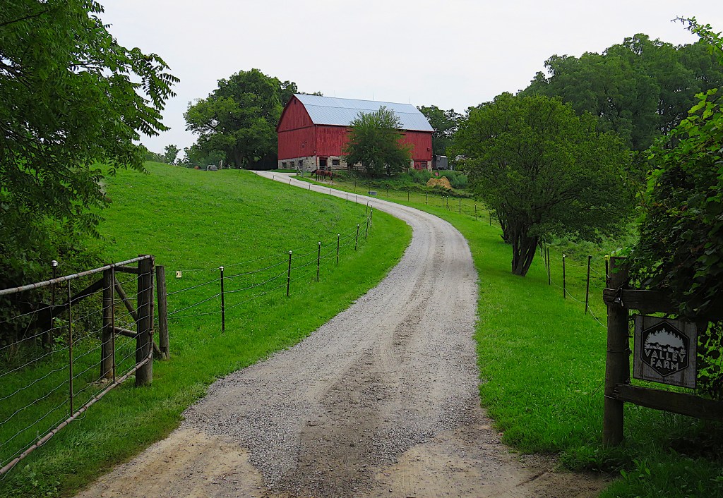 221. Just after you turn north off Governors Road, you pass the driveway to Valley Farm. With its idyllically pastoral location and photogenic bank barn,* it’s a place where horses are boarded by riders who like to take advantage of the bridle paths in the DVCA. Valley Farm boasts that it allows each horse two acres of roaming space. Its website includes a recipe for Christmas cookies … for horses! You’ll meet two boarders at #235 below.