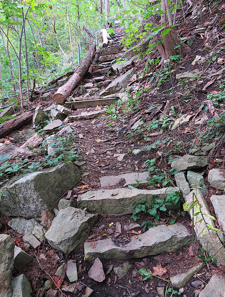 273. Here you ascend rustic stairs that Bruce Trail volunteers have built to help hikers up the steepest section.