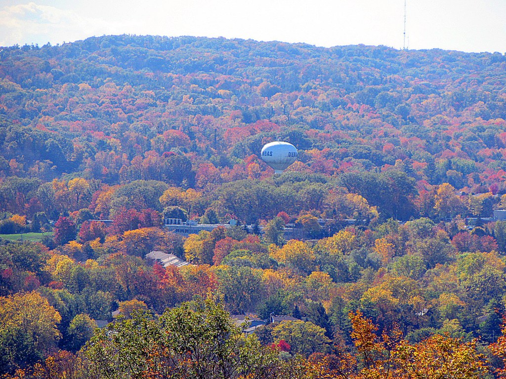 270. From this short section of sidewalk you get a fine view over Dundas. This is a panorama of downtown, from the pink Town Hall cupola on the extreme left, to St. Augustine’s brick tower and the stone tower of the old post office on the right. The brick building with the steeply pitched roof and chimney in the foreground is Knox Presbyterian Church on Melville Street. Aside from the central cluster of residential highrises, Dundas seems to occupy a dense forest that covers the floor of the entire Valley. The town’s present climate is moist and temperate, with 95.2 cm of precipitation yearly, similar to rainy Seattle, WA. Will climate change heat up and dry out the Valley, so that forest fires become possible? One certainly hopes not!
