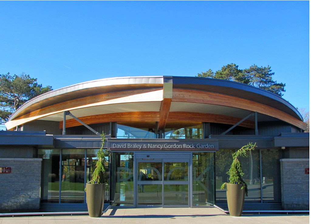 320. The RBG Rock Garden, 1185 York Boulevard, Hamilton, is about 4 km (a 5 minute drive) from the Snake Road end of today’s hike. Go south down Snake Road until, renamed Hillsdale Avenue, it joins Plains Road West. Turn left (south), go over the bridge over Highway 403, and turn right at the lights along York Boulevard. The Rock Garden P is 500 meters on the left at the next set of lights. Cross York Boulevard on foot at the lights to enter the Rock Garden via the Visitor Centre (above).