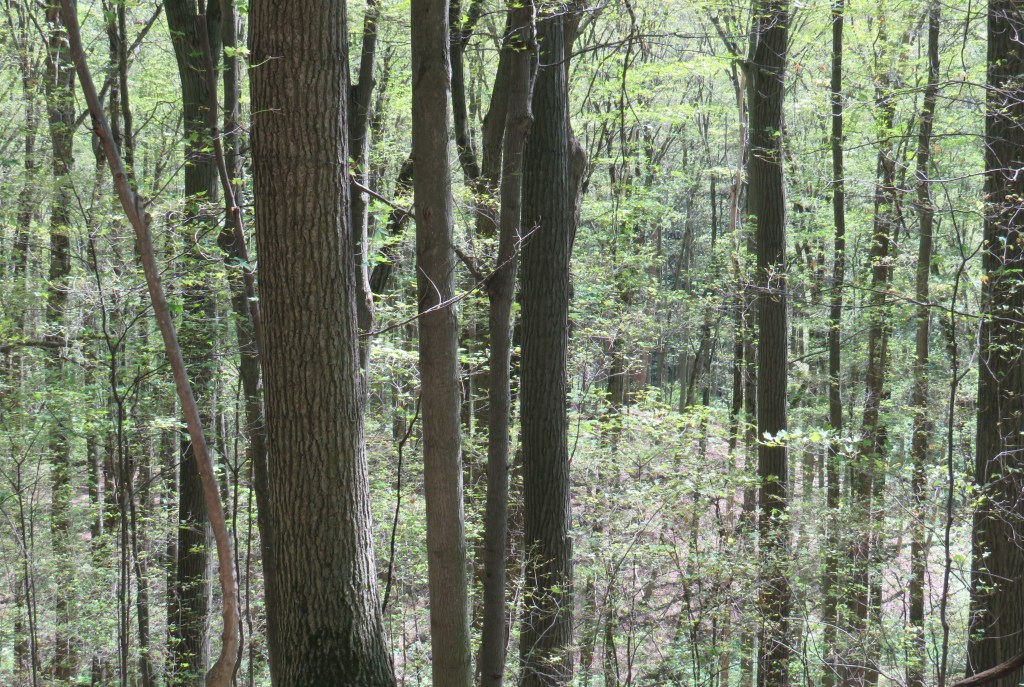 331. … and take in the sight of this mature, largely deciduous forest of red oak, sugar maple, and shagbark hickory. Listen attentively and you’ll probably hear woodpeckers tapping away.