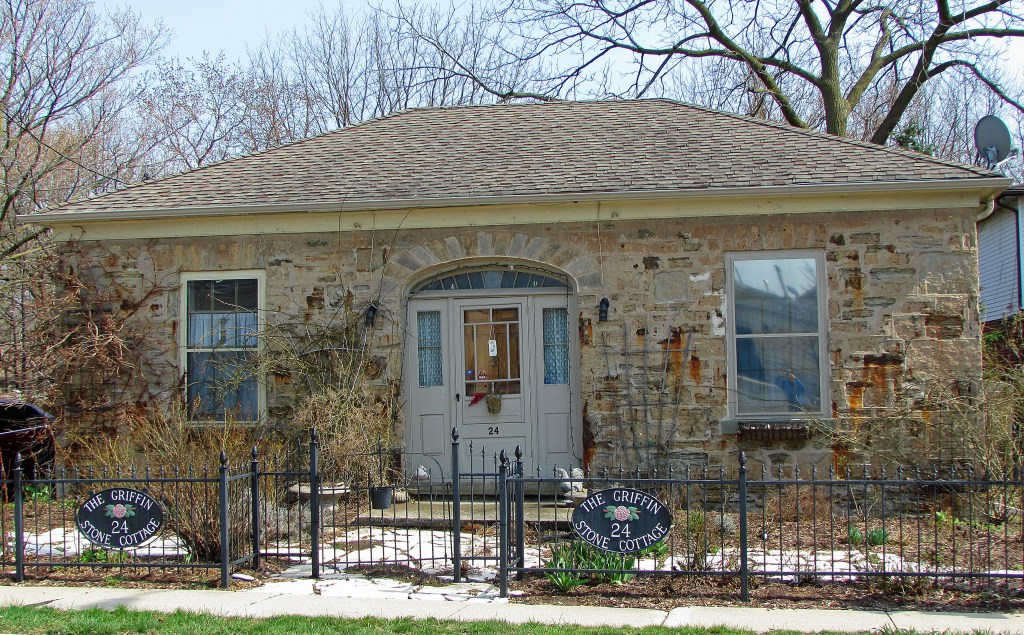 343. The Griffin Stone Cottage at 24 Griffin Street, built ca. 1845 in Regency style, is the oldest unaltered domestic building in the village. In spite of its name there’s no evidence that it was built by or for the Griffin family.