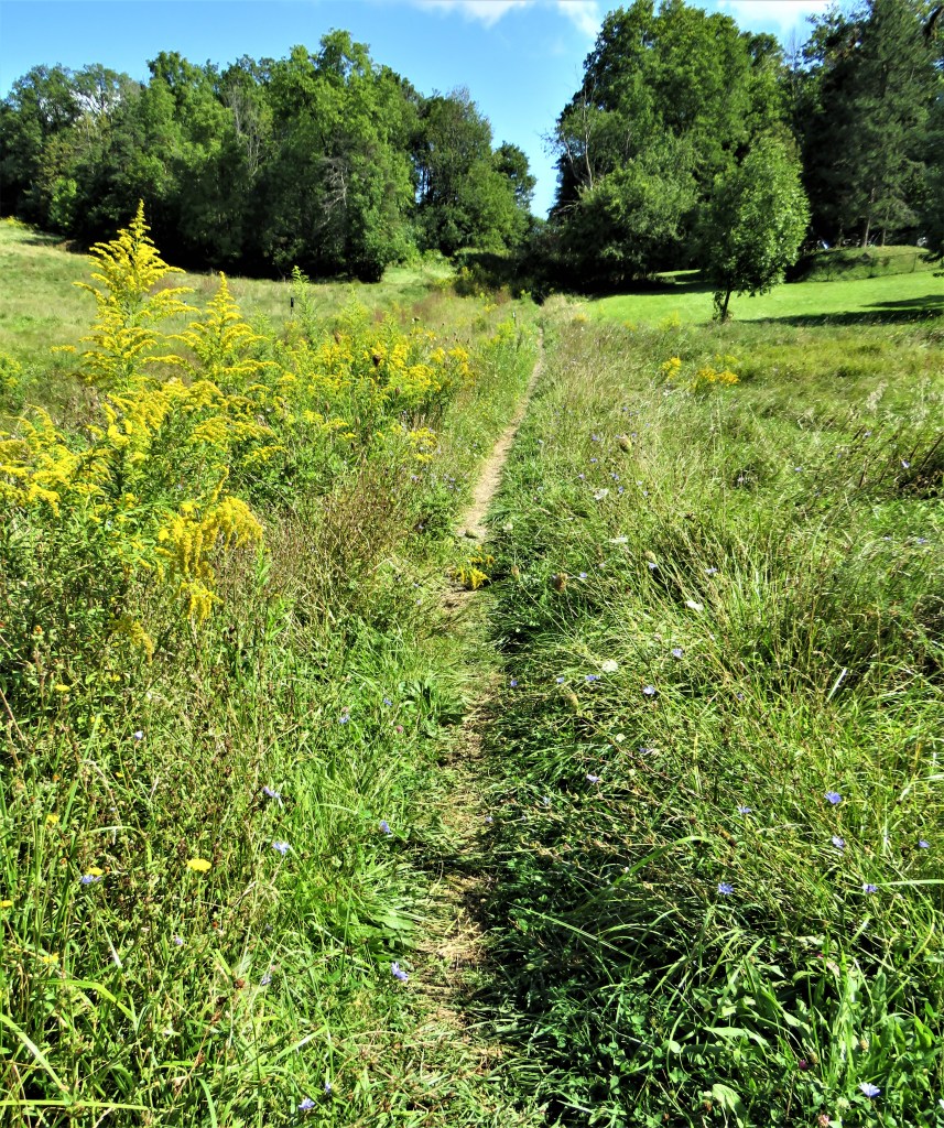 351. Then take the path uphill through what looks like a meadow but is actually a spillway from a stormwater pond at the top of the hill.