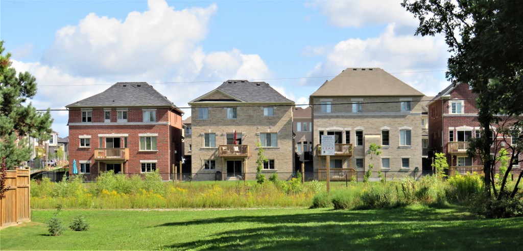 There is an optional loop back via King Road and Mountain Brow Road (the smaller red dots on the map above). This return is far from beautiful, but it is instructive, as it runs along the edge of one of the largest new housing developments in the Hamilton area, Mountainview Heights in Waterdown. This return loop is about the same distance as retracing your steps.