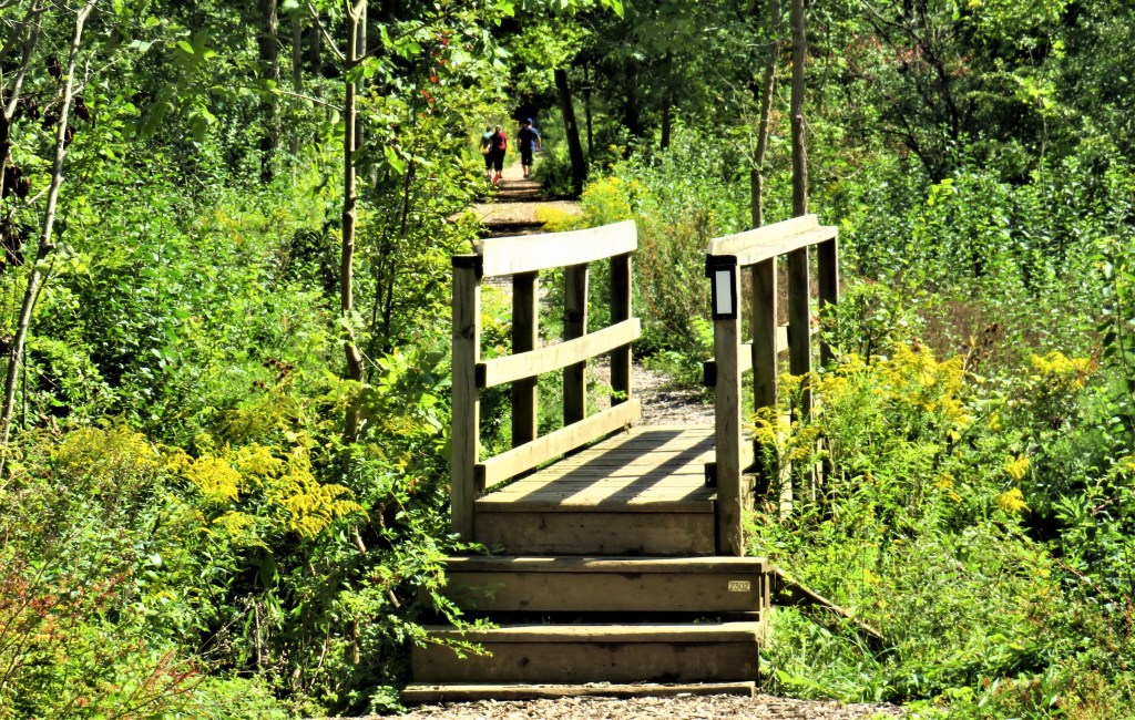 Just beyond this stile is a notice with a pair of brushes attached at the bottom. It asks you to brush off your footwear so you don’t inadvertently import into this ecologically-sensitive area seeds of various invasive plants, such as garlic mustard, common buckthorn, and dog-strangling vine.