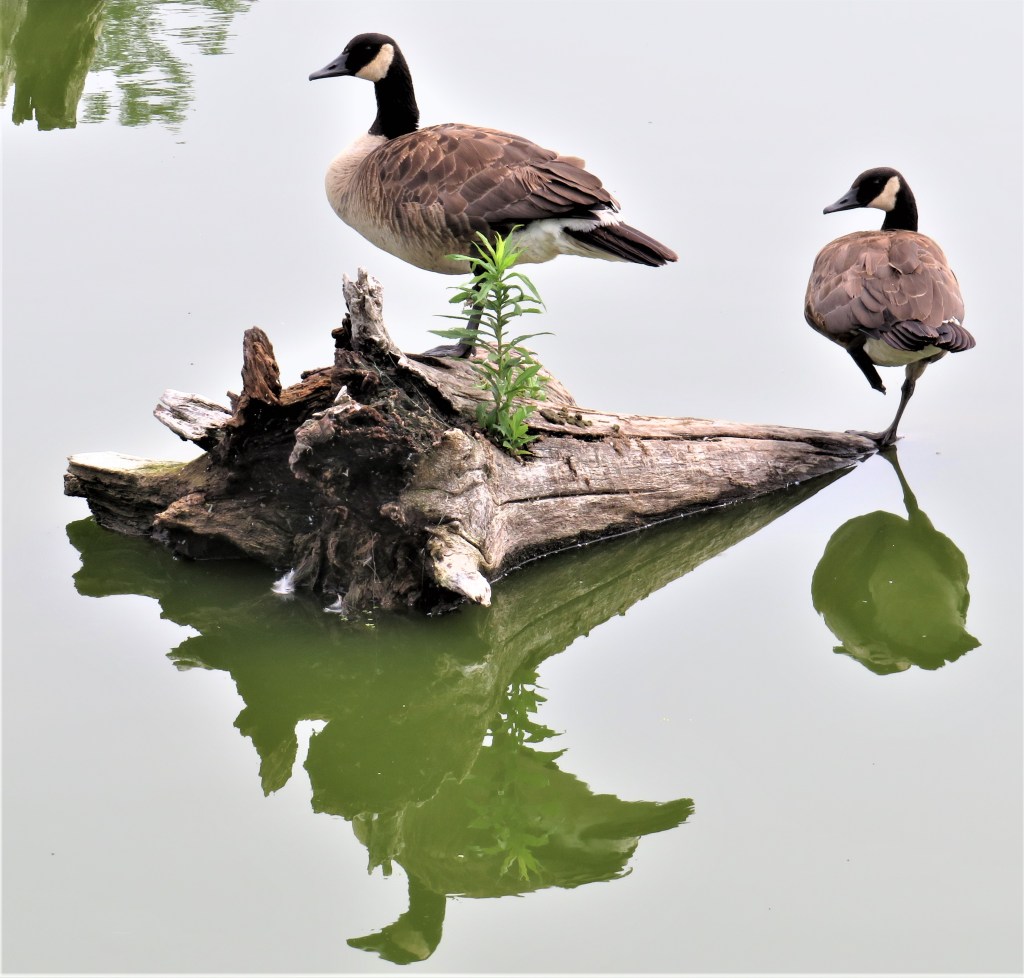 60. Let’s take a shortcut to the RHVT via a narrow stony trail (top) separating the two Van Wagner Ponds. Between gaps in the foliage you might glimpse this sort of statuesque avian composition (bottom).