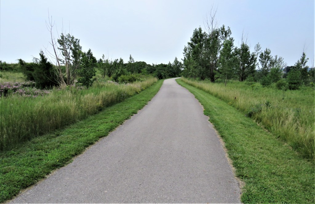 70. Here at the Queenston Road endpoint are signs for the HamBur (i.e., Hamilton/Burlington) Loop. This is an established loop trail for cyclists that covers some of the same ground as our HOLO loop, at least in its north and eastern sections. But the Bruce Trail is off limits to cyclists, so the HamBur Loop avoids the Dundas Valley and takes rail trails along the Escarpment and roads along the north shore of Hamilton Harbour. It’s a mere 48.2 km long, thus 25.0 km shorter than the HOLO loop.