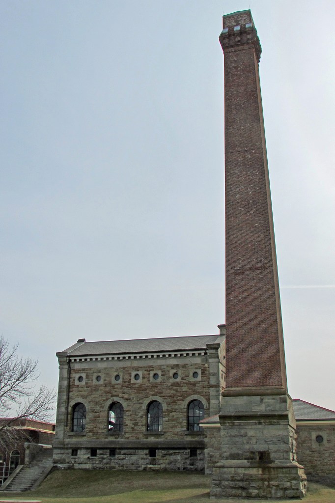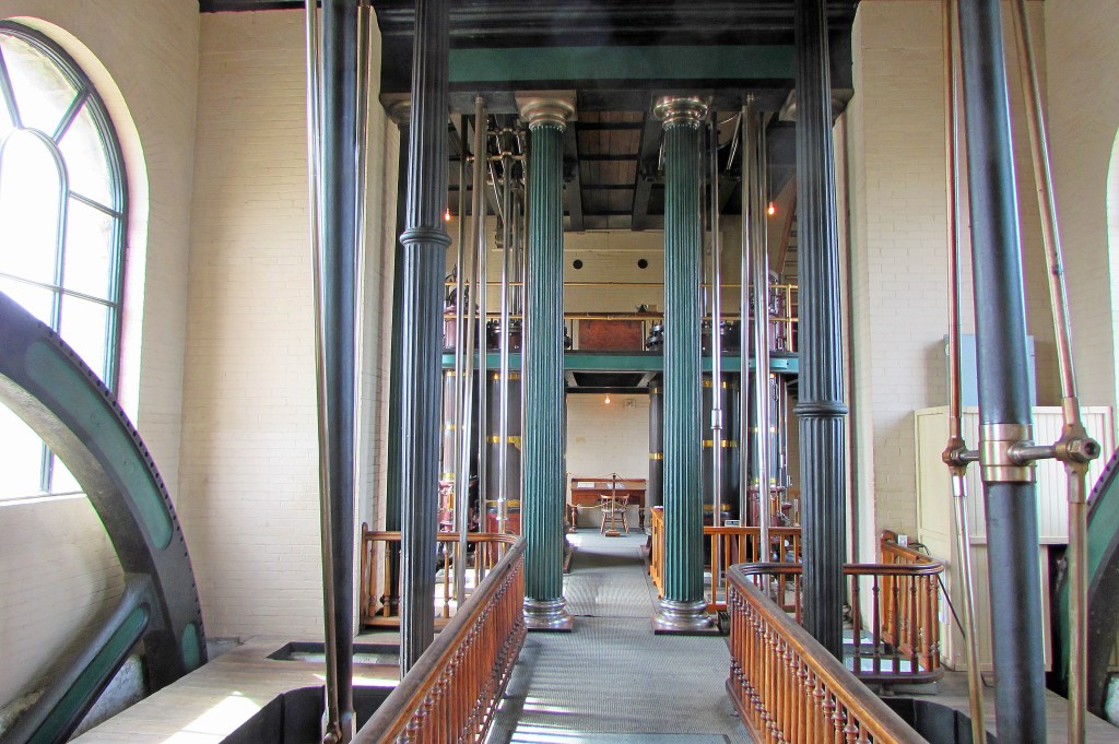 (Top image) The stone enginehouse and towering 46 metre chimney, the latter to disperse the coal smoke.
