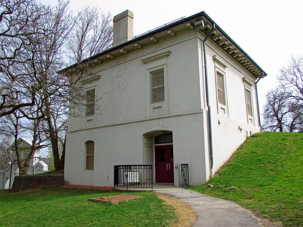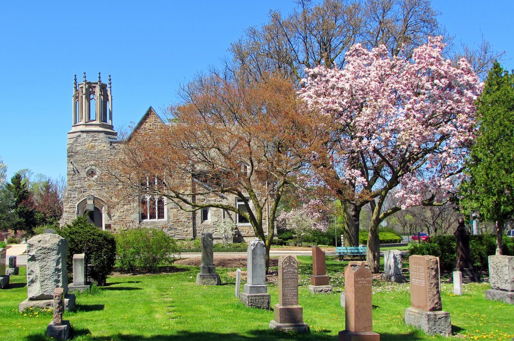 149. Across York Boulevard from the Dundurn Castle parking lot is the main entrance and gatehouse to Hamilton Cemetery. The oldest public cemetery (1847) in the city, it contains the graves of many local notables. Near this spot there is a memorial to the politician and townsite developer George Hamilton (1788-1836), for whom the city is named and who was responsible for its establishment at the Head of Lake in the 1820s. A circuit of the cemetery makes a very pleasant stroll on a fine day, and there are visible remnants of the earthworks of 1812 to be found among the graves.