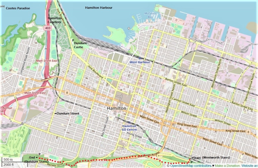 End Point: Dundurn Stairs, near south end of Dundurn Street, Hamilton