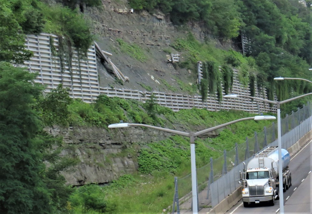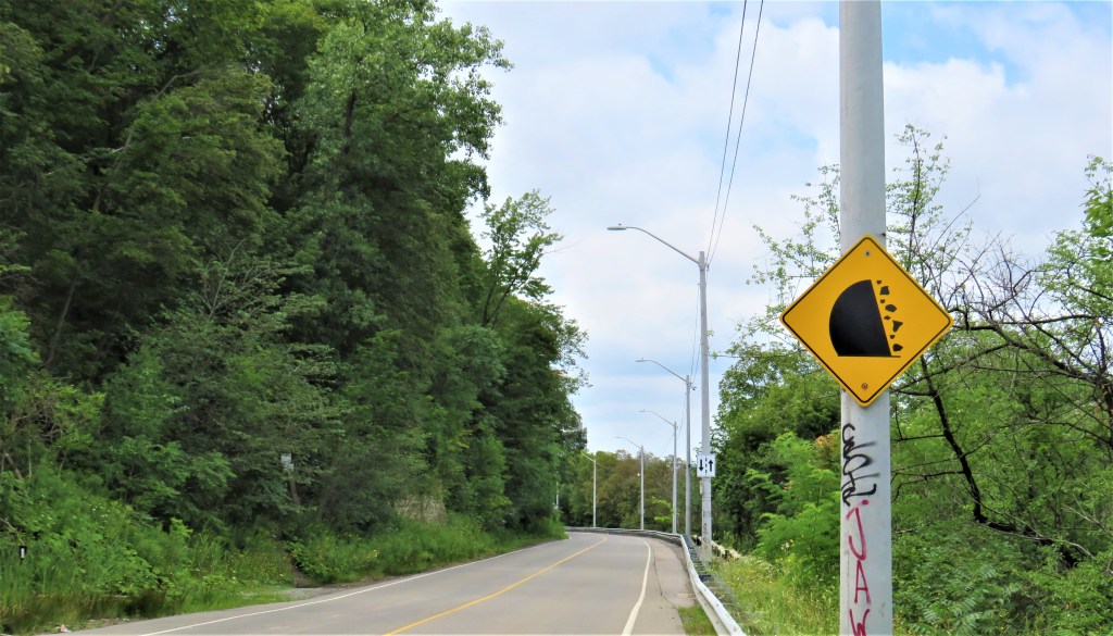 138. … and you’ll begin to understand the problem of keeping the roads open between Hamilton’s lower city and the Mountain. The Niagara Escarpment is a very active geological feature, considering its age. It’s eroding backwards as lower strata of soft mudstone are eaten away by weather … and crumbled by the vibrations from passing tanker trucks. Then the harder dolomite cap, no longer supported, falls down, sometimes in great chunks. This process has been going on for millions of years and will continue for millions to come. Concrete retaining walls are no match for it. Really, this is a city that requires expert geologists perpetually on call to establish how best to deploy road maintenance resources.