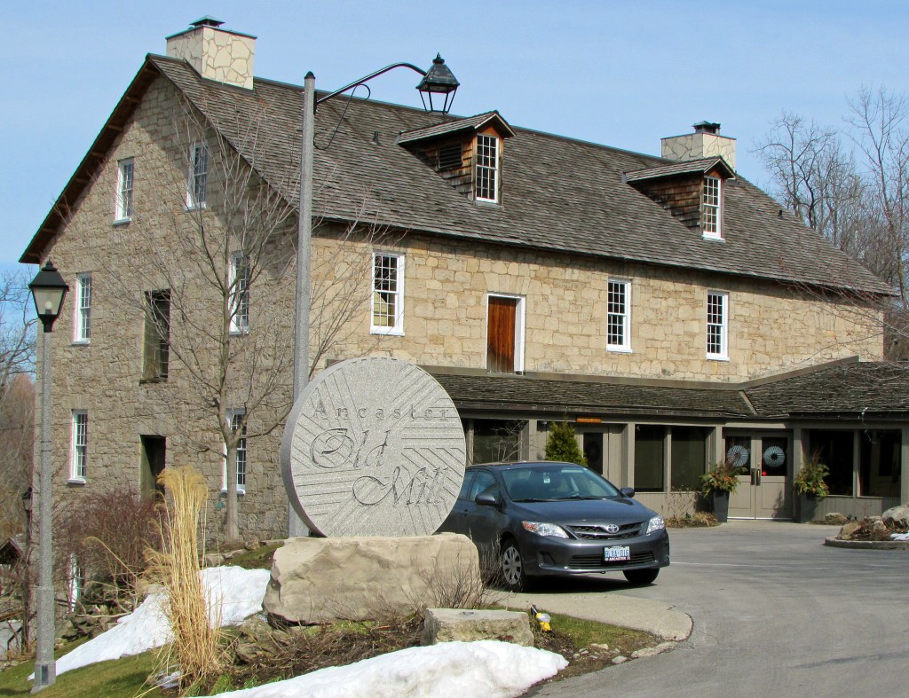 184. As the plaque indicates, this stone beauty wasn’t the first mill building on this location, but it’s been the longest lasting one. Since 1979, Ancaster Old Mill has been operating as one of the most popular restaurants and wedding venues in the area. The site includes an outdoor and indoor chapel, a grand ballroom, and a solarium, as well as photogenic waterfalls, decks, terraces, steps, and bridges. You can explore the exterior grounds of the complex as long as no private event is taking place.