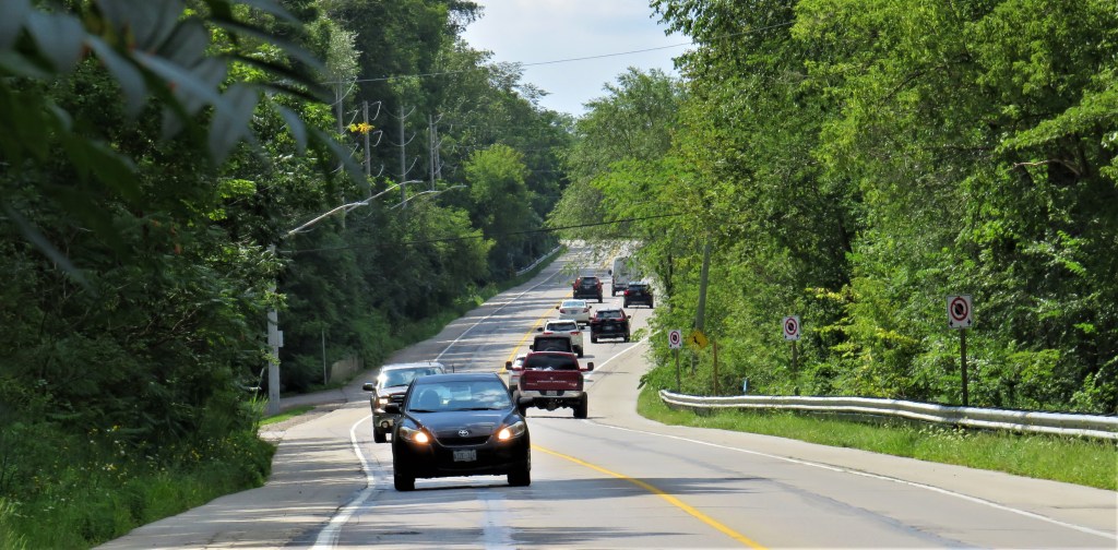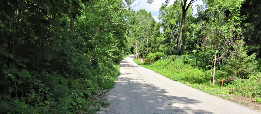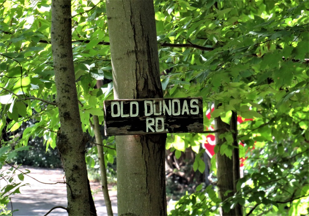 182. And this is your endpoint: Old Dundas Road. This narrow, roller-coaster of a road is the only direct route for cars between Ancaster and Dundas, the two oldest settlements in the area. One of the few paved roads through the DVCA, it changes its name to Old Ancaster Road when it meets the former boundary between the towns. It’s a beautiful road to drive in the fall, but it’s not safe to walk any stretch of it north of Montgomery Drive, as there is nothing to separate pedestrians from traffic.