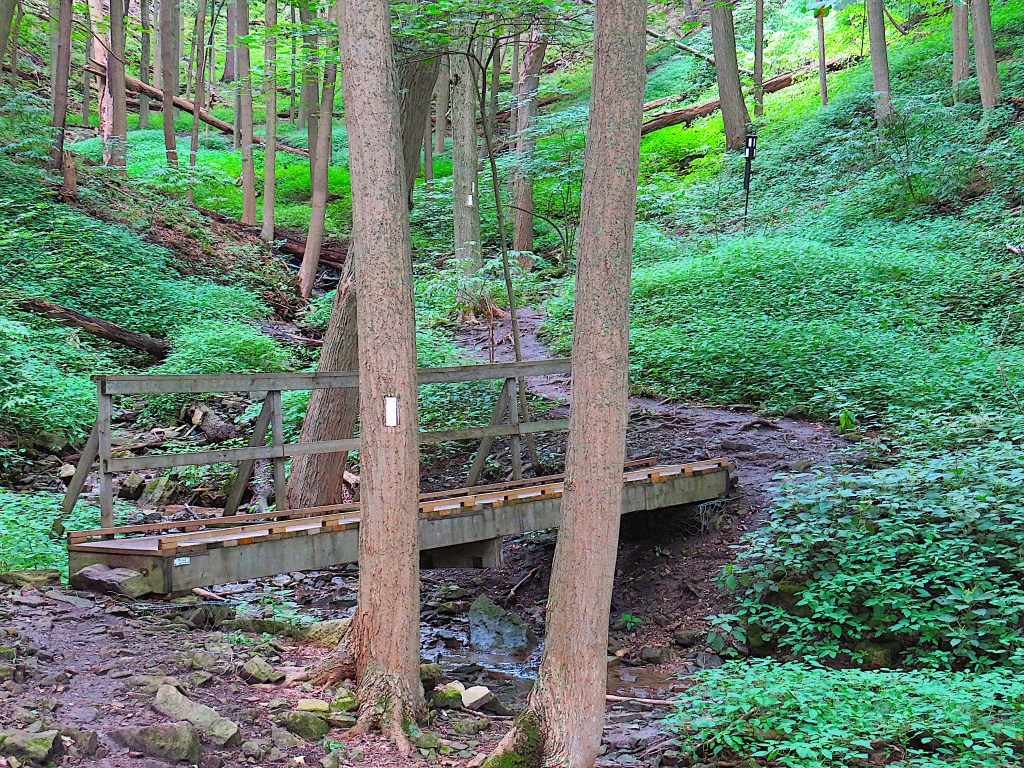 This deep forest ravine is reputedly frequented by otherwise rare birds such as the Louisiana waterthrush and the tufted titmouse.