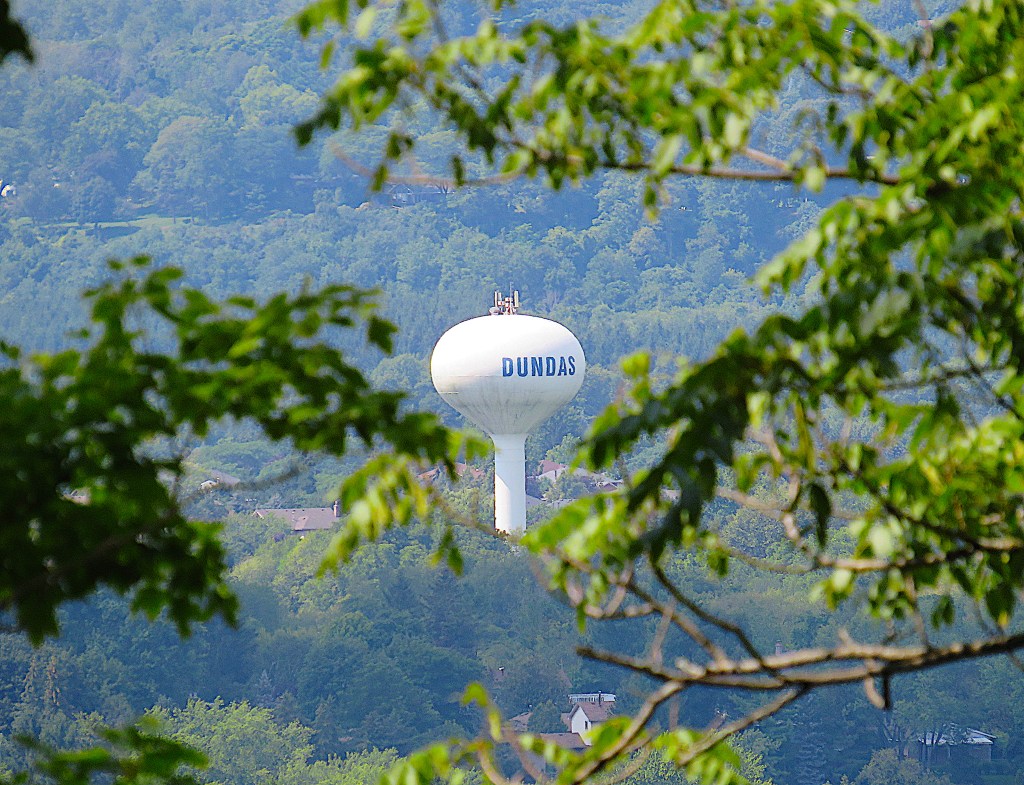 175. Through a gap in the trees, you may glimpse the Dundas water tower down in the Valley. This landmark is 37 metres tall and has a capacity of 2.8 million litres.