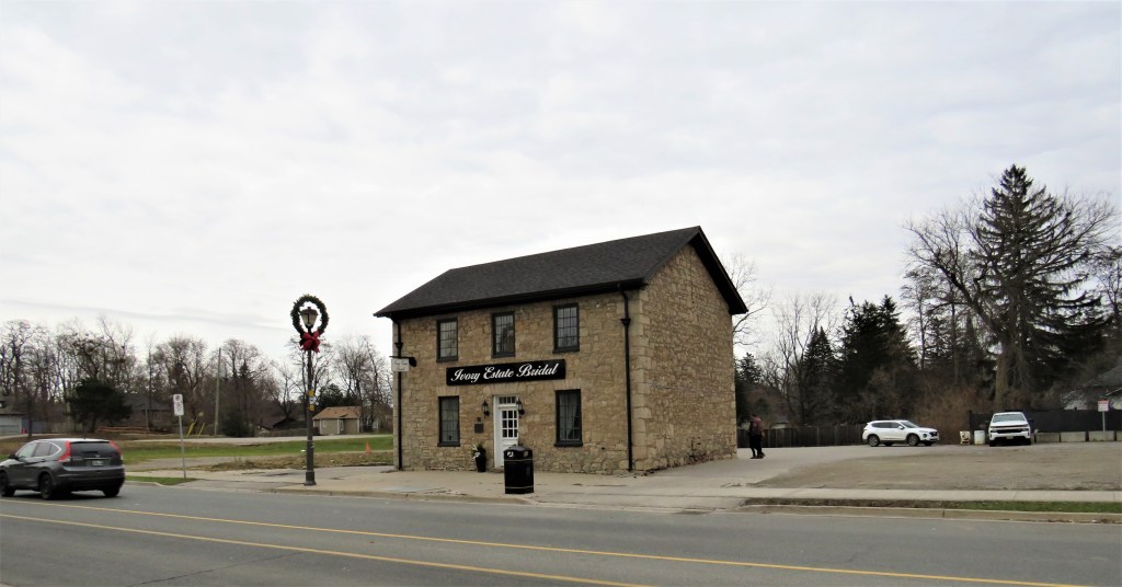 189. On Wilson in the middle of the Village is Ancaster’s former Township Hall, built in 1871 at a cost of $2,700. As municipal government is now conducted in Hamilton, this building has been repurposed as … you guessed it … a wedding venue.