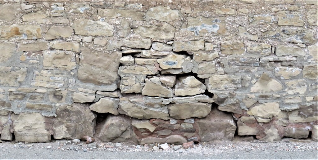 191. … A little way north on Wilson from the Coach and Lantern, this old stone building stands alone surrounded by a huge, flattened area. It’s the Marr-Philippo House, a Georgian-style stone dwelling built about 1840 and currently occupied by a bridal shop. (Some think of it as the Hanley Building, as it was formerly occupied by Hanley’s Eyewear Boutique.) It has been a designated heritage structure since 1981. However, there are plans to turn this whole site into a large six-or-seven storey upscale condo and commercial development. Perhaps nervous about the new local sensitivity to heritage after the Brandon House debacle, the developers claim to want to preserve this building by moving it 100 metres to the back of the lot, where it would become “an amenity space for residents.” Such a plan hardly conduces to the preservation of Ancaster’s townscape. Moreover, as you can see from the lower photo, the state of its south wall would make moving it a dodgy proposition. (Of course, demolition by accident during such a move would be quicker and more certain than, say, demolition by neglect.)