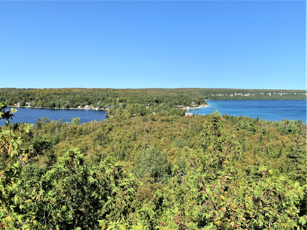 788. From this height we overlook two bodies of water divided by a narrow rocky spit of land. On the right is Barrow Bay, an inlet of Georgian Bay, while on the left is Little Lake, which is … a little lake! Judge’s Creek runs left to right, cutting through the isthmus and flowing into the Bay. Once upon a time there was a sawmill on the spit of land in the middle of the image, and Little Lake was used to store timber from the interior of the Bruce Peninsula to be processed in it. Now cottage roads almost entirely surround Little Lake.