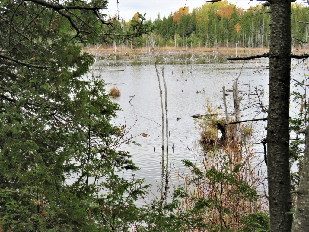 825. The Trail turns inland from Cape Chin and passes this nameless beaver pond.