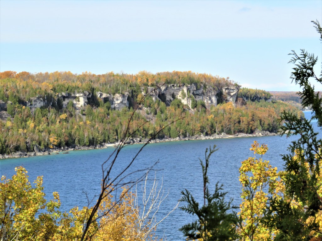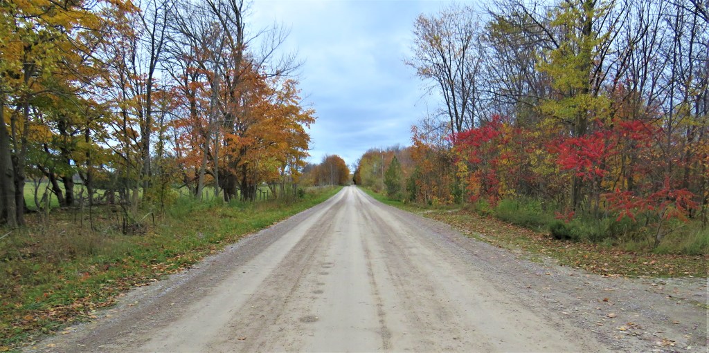829. … and joins Cape Chin North Road for a short distance heading northwest. Peak colour has come and gone on the Northern Bruce Peninsula, but Nature’s palette is still lively enough to illuminate our way.