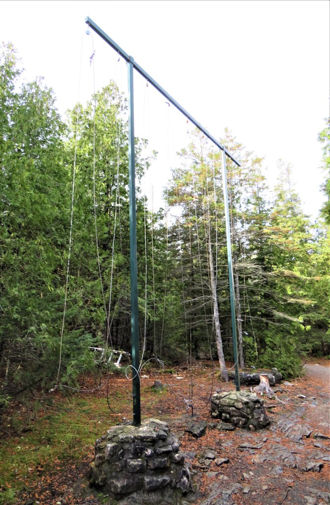 871. The hi-tech bear hang here at Stormhaven. For those unfamiliar with the ways of the backwoods, first you stalk your bear, then you kill it with your bare hands, skin it, hang its carcass on this structure, then wait three months for the meat to cure …. Seriously, here backcountry campers hoist their food packs high off the ground on ropes slung over pulleys so that hungry bears can’t reach them. If your pack is dangling up there, a bear is much less likely to come snuffling into your tent in the middle of the night aiming to snarf that aromatic beef jerky you were saving for breakfast.