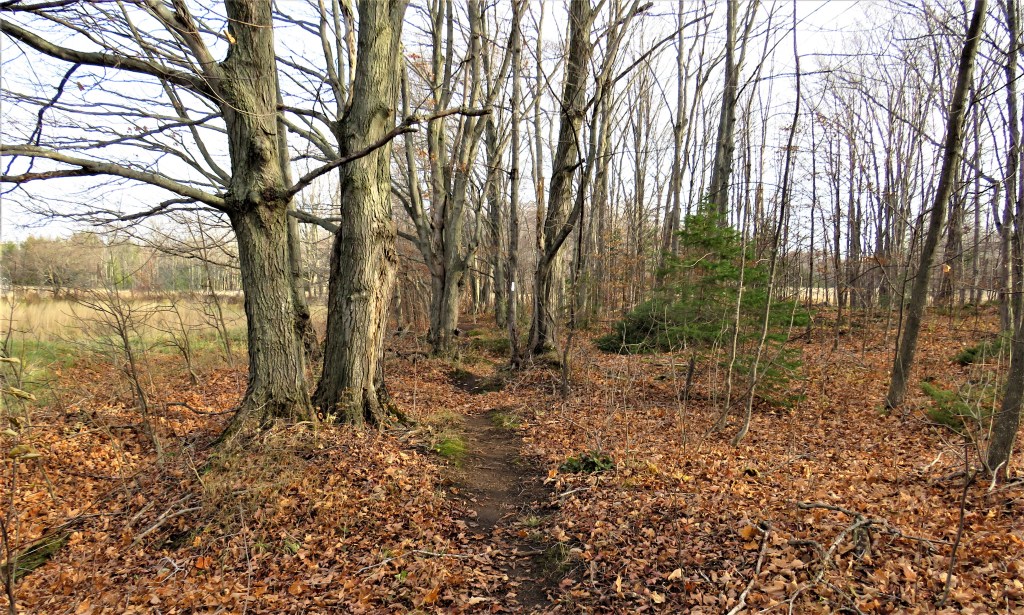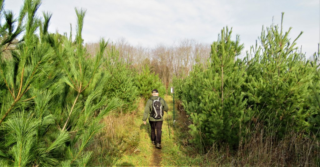 884A, B & C. The Trail then veers off road to the right. Now there’s (A) dolomite pavement here near where the Niagara Escarpment lowers itself to lake level at Tobermory, then continues underwater to Manitoulin Island; (B) there’s either a newly planted little pine forest or a Christmas tree farm; and then (C) there’s an ex-golf course. Called Cornerstone, it was a 9-holer that opened in 1963 and closed down for undetermined reasons in 2018. The tees, fairways, and greens are all completely overgrown.
