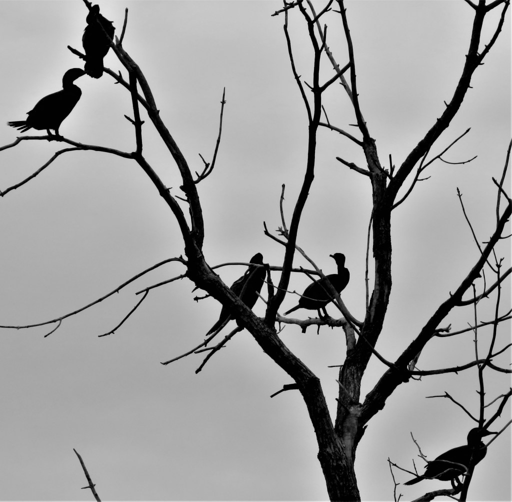 94. Double-crested cormorants roost in a leafless tree by the bank of the Niagara. The cormorant is a bird with a long-standing bad reputation. In Milton’s Paradise Lost (1667), for example, Satan, brooding on how to undermine God’s handiwork, is described thus: