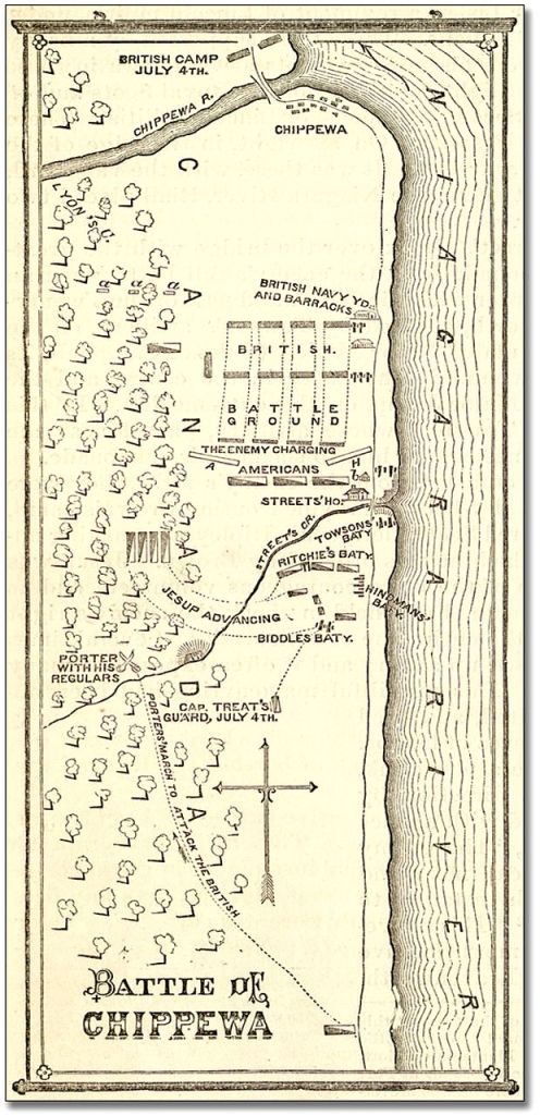 87. There’s usually a story behind the renaming or respelling of placenames. As this map (left) of the Battle of Chippawa shows, the Welland River that forms the northern boundary of the battlefield was in 1869 still referred to as the “Chippewa River,” even though it had been officially renamed the “Welland River” by Lieutenant Governor John Graves Simcoe in 1792 after the river in Lincolnshire, England. Why Lincolnshire? As Alun Hughes in “The Naming of Niagara’s Townships” (2013) notes, Simcoe named the counties west of the Trent River in Upper Canada systematically for counties in eastern England, probably indicating his “desire to create a ‘Little England’ in Upper Canada,” and placed the entire Niagara Peninsula in Lincoln county.
