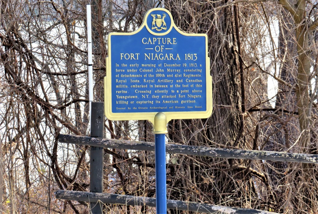 10. A plaque framed by the west bank of the Niagara River memorializes the capture of Fort Niagara by the British nine days after the burning of Newark by the Americans. This action led to 65 Americans dead and 16 wounded, all by bayonet, and 350 captured, with 6 British dead and 5 wounded. Though the casualty list in the War of 1812 seems short by later standards, the conflict was often extremely brutal. The use of bayonets, rather than firearms, in the capture of Fort Niagara was part of the successful British strategy of stealth alluded to on the plaque: letting off firearms would have given away their position too soon. The British held Fort Niagara until the Treaty of Ghent, ending the War of 1812, came into effect.