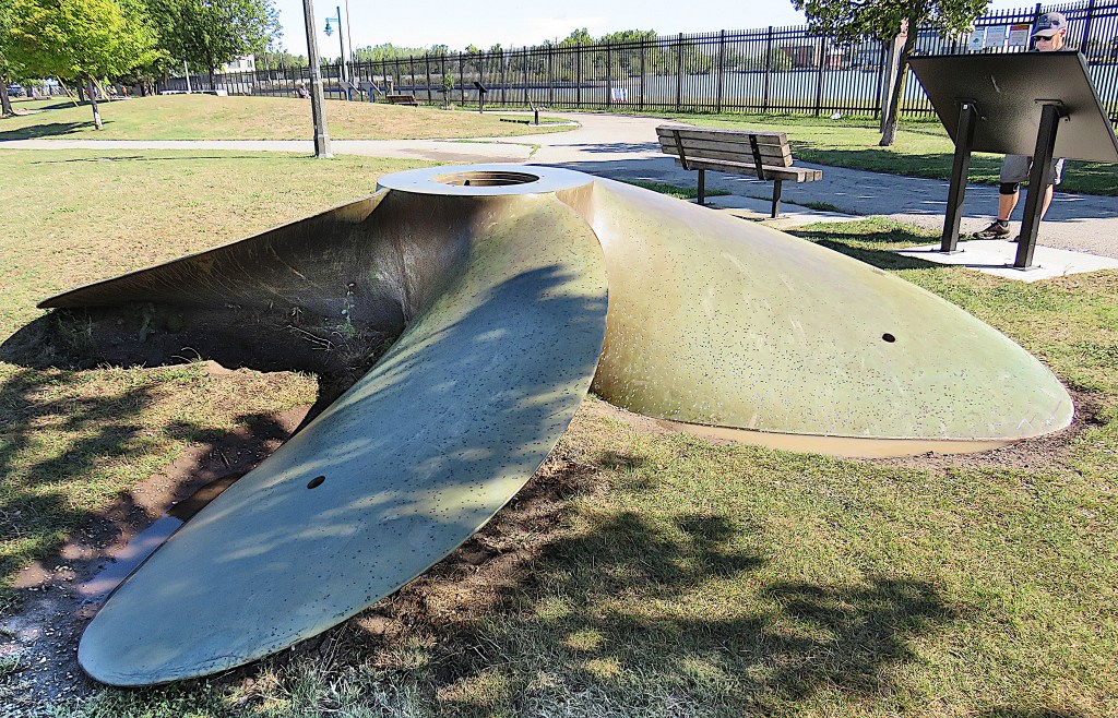 92. The John O. McKellar Propeller lies in Charles A. Ansell Park by the Trail. It comes from the ship of the same name built in the Port Weller dry docks in 1952. The name of that ship commemorates chief marine engineer John Oscar McKellar (1878-1951) of Scott Misener Steamships Co. Ltd., one of the largest shipping companies on the Seaway during much of the twentieth century.