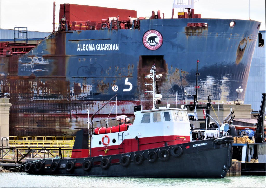 90. … the one on the left is Burch Nash, a twin-screw tugboat built in 1944. Formerly known as Lac Manitoba, she sank on the St. Lawrence near Cornwall, Ontario in 2015. She was later raised by Heddle and is now used to help vessels in and out of the dry dock. Moored at her right is the John D., a workboat built in 1954, owned by McKeil Marine of Burlington, and used for various towing operations.