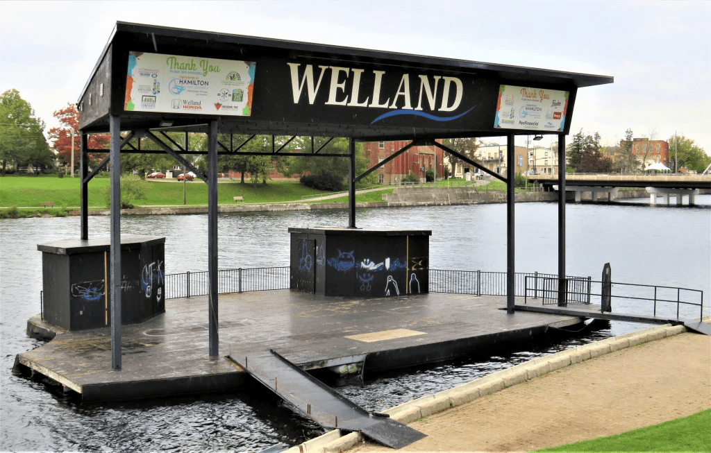154. You probably assume that the Welland Canals were so named for what they all flowed through, namely the City of Welland (pop. 52,000) … and of course you’d be wrong. “Welland” was first attributed to the River that rises west of Hamilton Airport and flows eastward for about 140 km into the Niagara River at Chippawa. The namer was Lieut.-Gov. John Graves Simcoe in 1792, after a river in Lincolnshire, England. (Simcoe liked to anglicize First Nations names, and had a thing for Lincolnshire.) Before Simcoe the Welland River was known as Chippawa Creek, and that name is still used locally. In 1851, this whole area became Welland County, after the River.