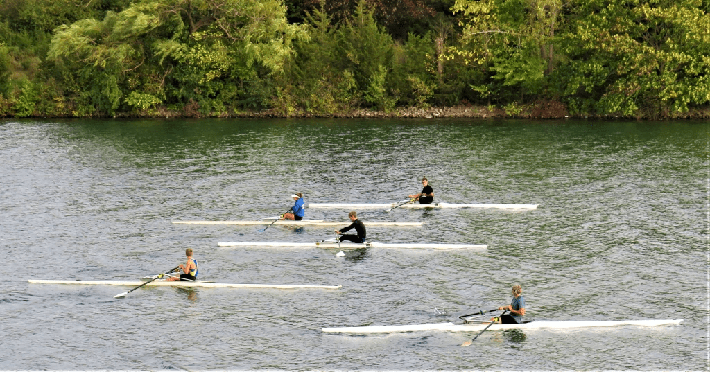 160. The calm waters of the Recreational Waterway are popular with all kinds of racing boaters.