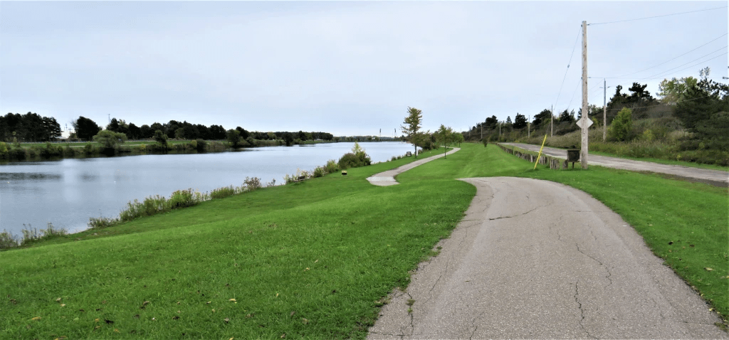At various points you can cross the Recreational Waterway and follow a trail along the eastern bank. There is, or was, also a trail along the eastern bank of the main (Bypass) Canal, though this doesn’t seem to be supported by the local municipality any longer. Better to follow the well-paved and signposted Welland Canals Parkway Trail.