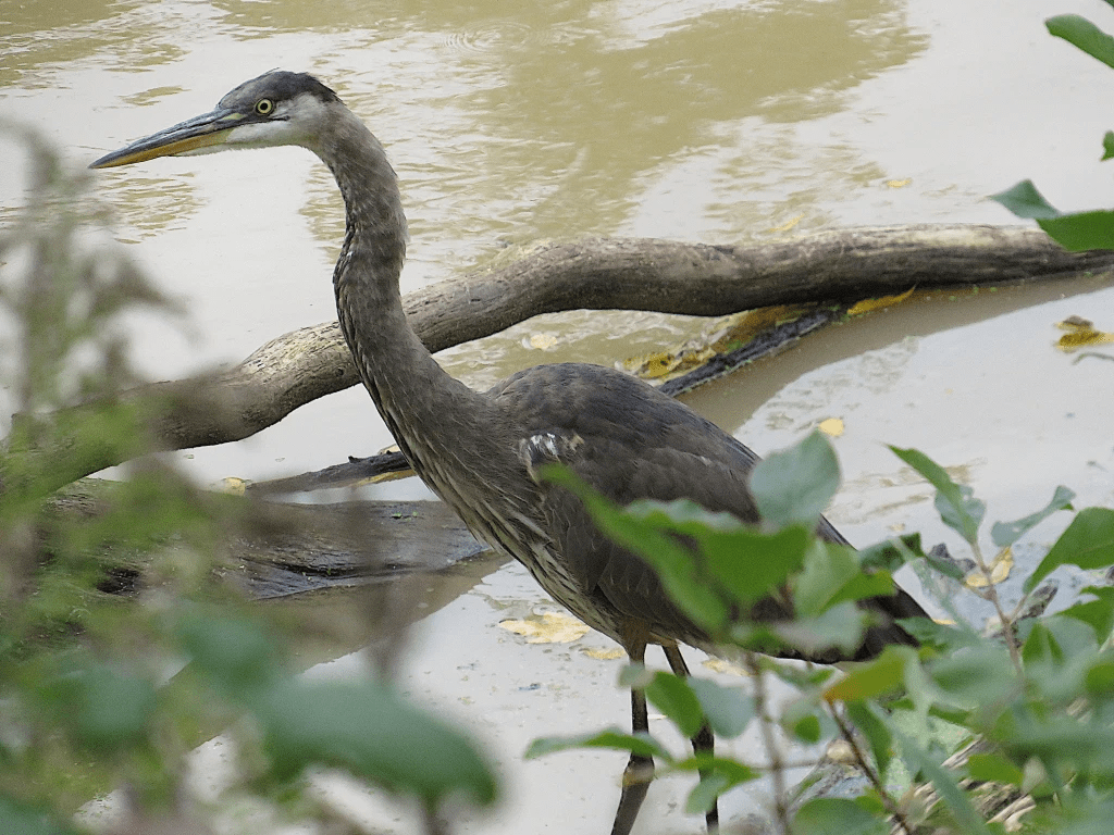 151. By the bank of the Welland River in central Welland, just before it plunges into the syphon culvert beneath the old Fourth Canal, there’s a great blue heron (Ardea herodias) totally focused on catching its next slippery meal.