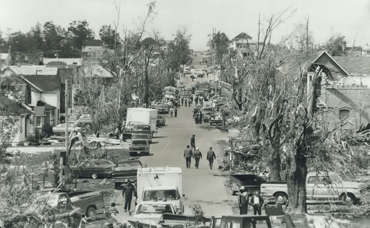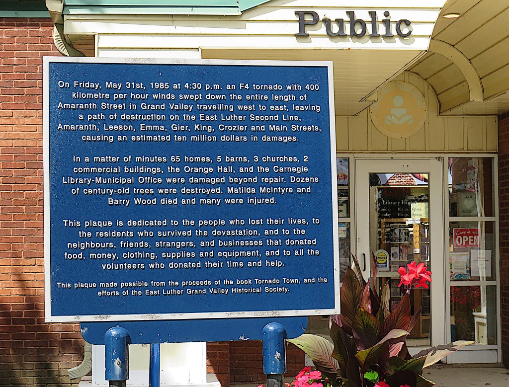 40. Grand Valley was used to periodic disasters in the form of flooding by the Grand River. But the tornado of 1985 was completely unexpected, and left a trail of destruction along Amaranth Street.