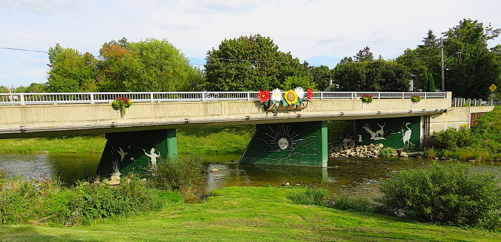 47. The Main Street bridge (1994) at Grand Valley. Its decorations suggest that this is a community that now loves, rather than fears, its river. Yet the first Main Street bridge was wrecked by a flood in 1901, then rebuilt, then wrecked again in 1918.