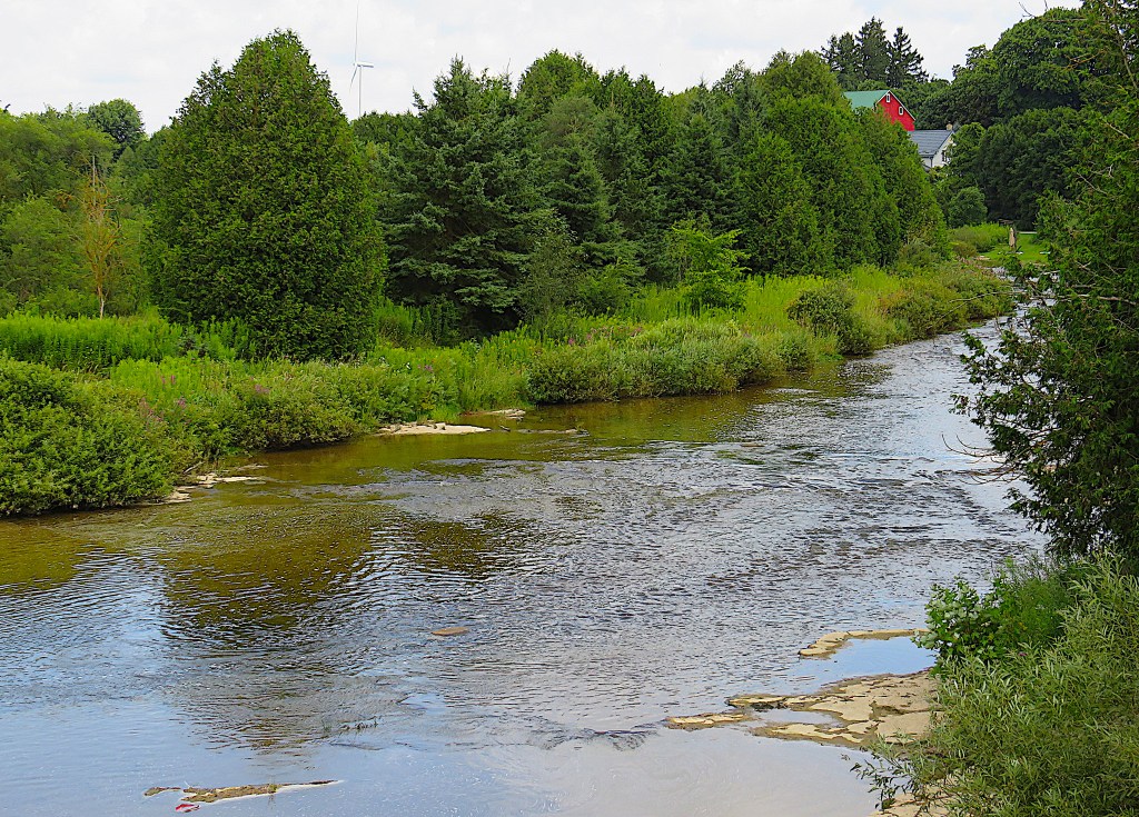 Keldon today is a sub-hamlet of half a dozen dwellings, whereas formerly it was a village with its own store and church. If you live in Keldon now you are car-dependent to say the least. It’s more than 15 km to the closest shops and services in Shelburne. In the later 19th century, Keldon was where the Grand grew wide and deep enough for lumber to be floated downstream to rail shipping points farther south. Now it’s hard to imagine anything much bigger than a popsicle stick floating easily down the placid shallow creek that is the Upper Grand in August.