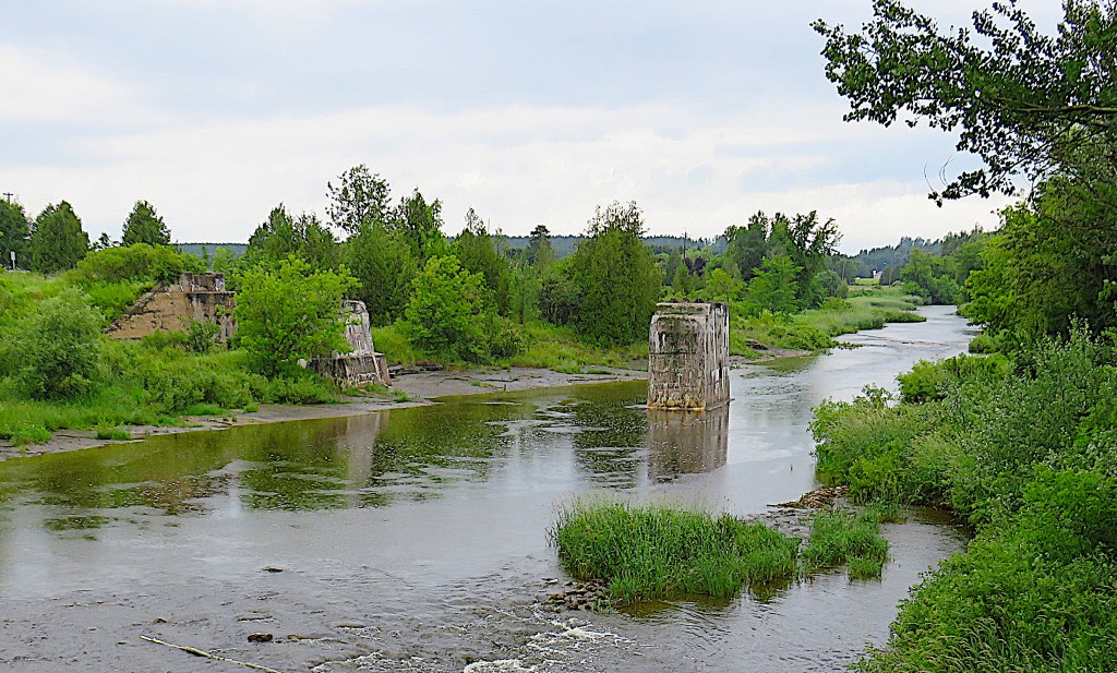 62. The remaining abutment and pier of the TG&B Railway bridge where it crossed the Grand, just north of the current Waldemar road bridge.