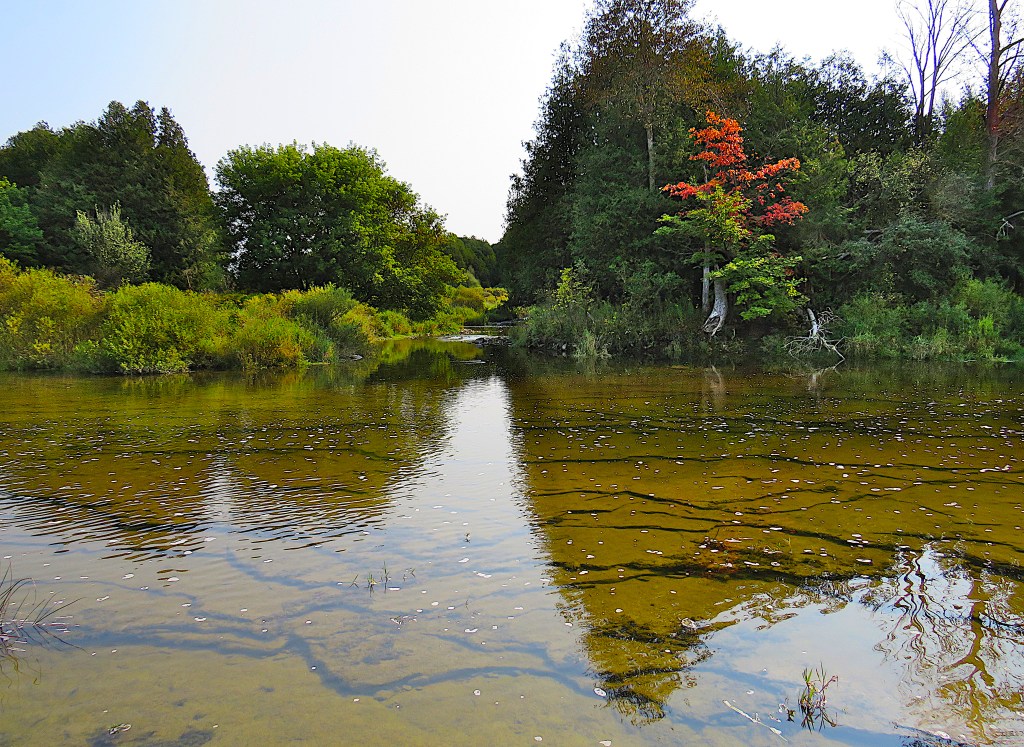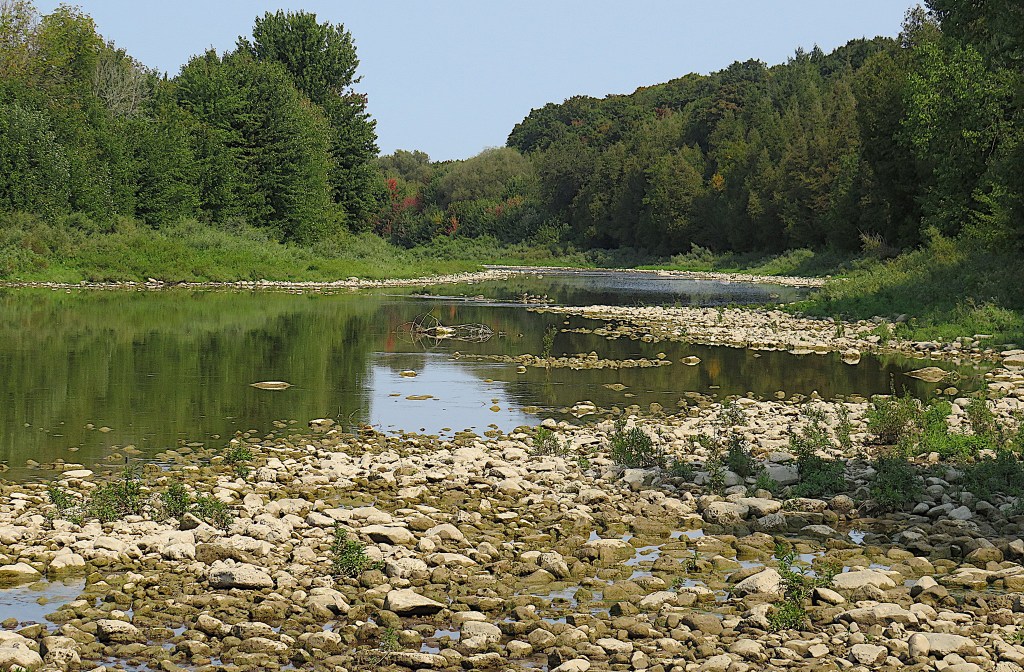 Two km north of the Belwood Bridge, the Grand starts to widen considerably, though it remains shallow. Downstream from the bridge, it forms Lake Belwood, a body of water created artificially by the Shand Dam at the Lake’s south end.