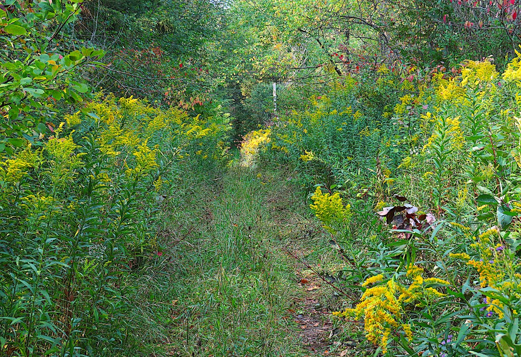 56. The McDowell Tract is a forest managed by the Grand River Conservation Authority at the apex of a large oxbow in the Grand. The entrance to the Tract on 10th Line is overgrown in late summer, but there is a trail hiding under all that vegetation …