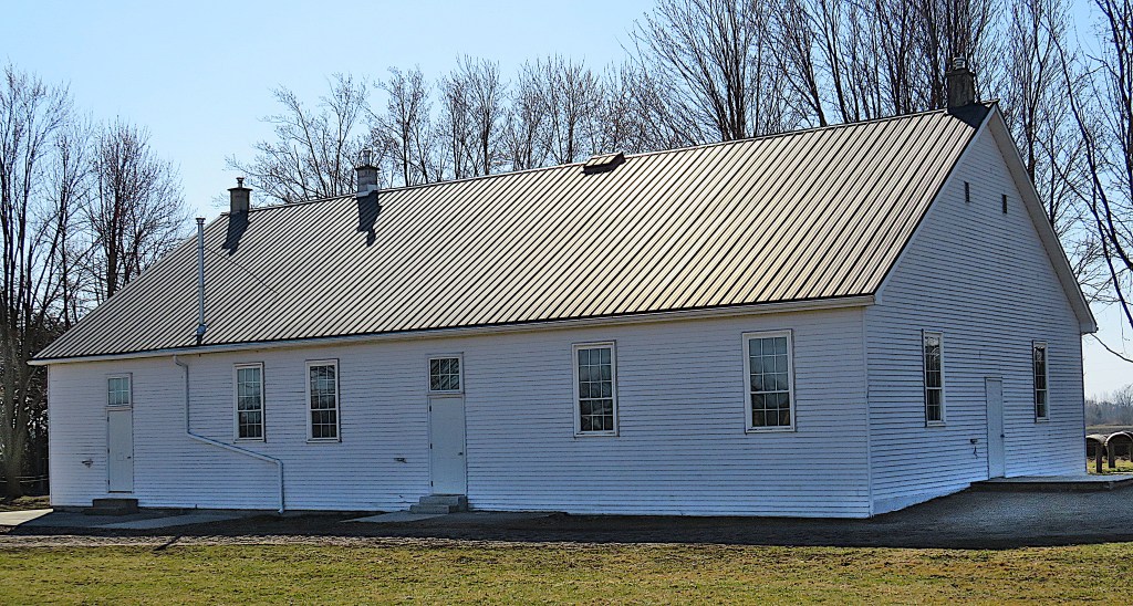 (Top) A short way east down Letson Drive, we come to Winterbourne Old Order Mennonite Meetinghouse, as unadorned a place of worship as you can imagine. It was built in 1965, expanded in 1986, and serves about 80 families.