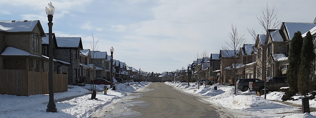 277. I loop back to the P via the Bridgeport North survey. You can have one of these regimented houses in any colour you like, as long as it’s beige. Or grey.