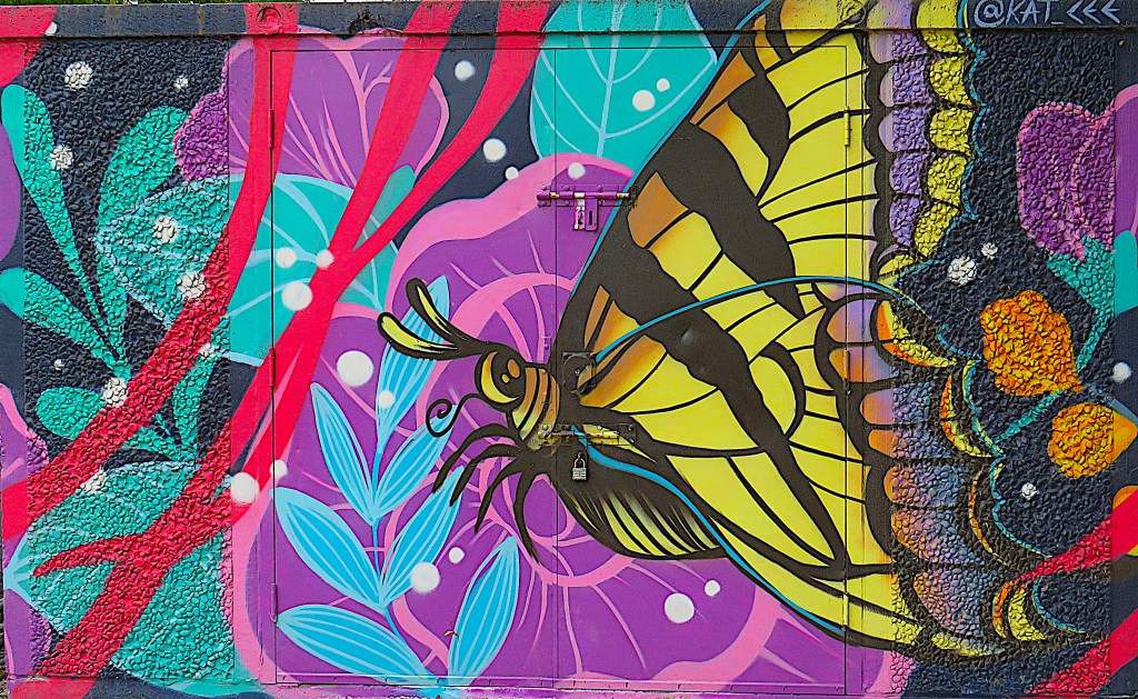 90. If one feature above all enlivens the often charmless Toronto urban landscape, it is the presence of striking street art. Here are three examples of decorated storage buildings in the linear parks along this stretch of the Waterfront Trail.